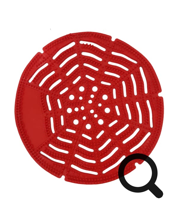 Ideado para no dejar pasar los cuerpos extraños (colillas, chicles, etc.) que se arrojan a los urinarios, evitando de forma fácil y económica la obstrucción de cañerías y sus consiguientes averías.