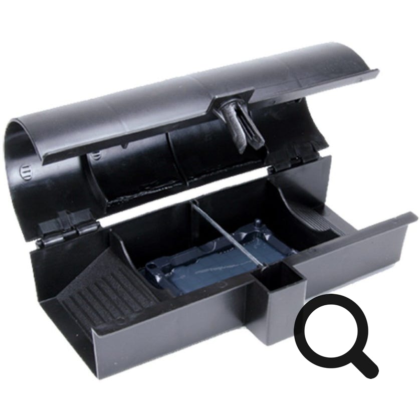 Máxima protección para los raticidas, con cerradura y llave de alta seguridad. Fabricado en Polipropileno de extraordinaria resistencia. Túnel de doble entrada con rampa de doble acceso para facilitar la entrada al roedor e impedir la entrada del agua. Uso en interior o exterior.